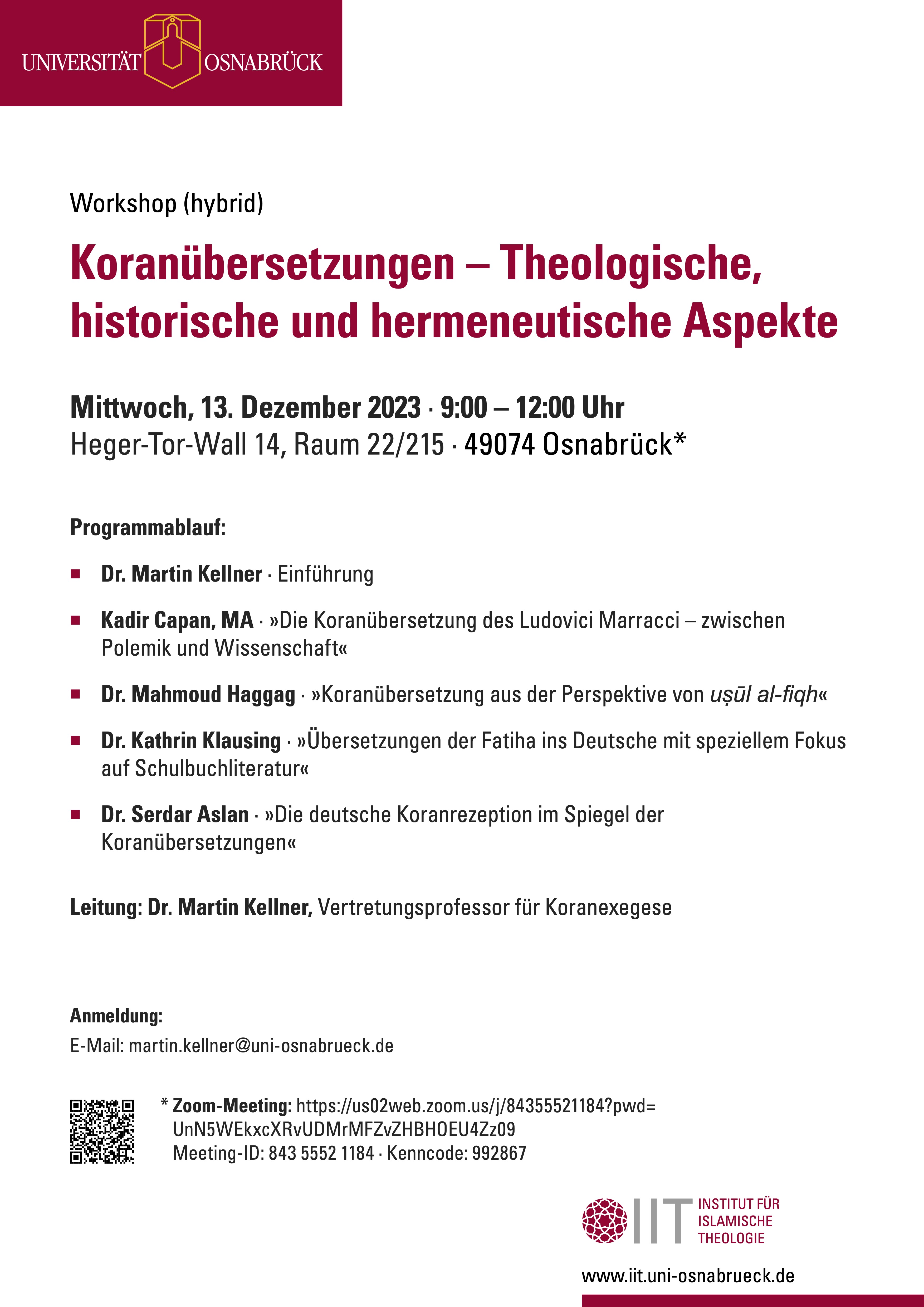 Workshop "Koranübersetzungen – Theologische, historische und hermeneutische Aspekte"